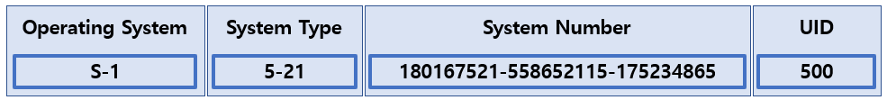 - 윈도우의 각 사용자나 그룹에 부여되는 고유한 식별번호(계정명이 아닌 ID값으로 식별)