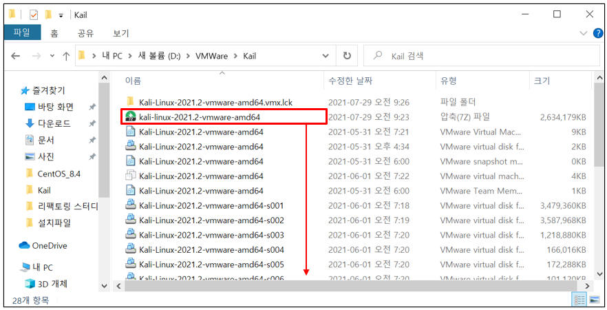 3) 다운로드 받은 ISO 파일을 압축 해제하게 되면 많은 파일들이 설치가 되고 Vmware로 이미지를 불러오면 된다.
