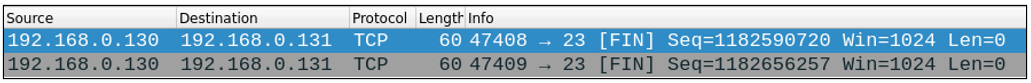 - 공격자는 희생자의 대상 포트로 FIN 제어비트만 설정한 패킷을 전송한다.
