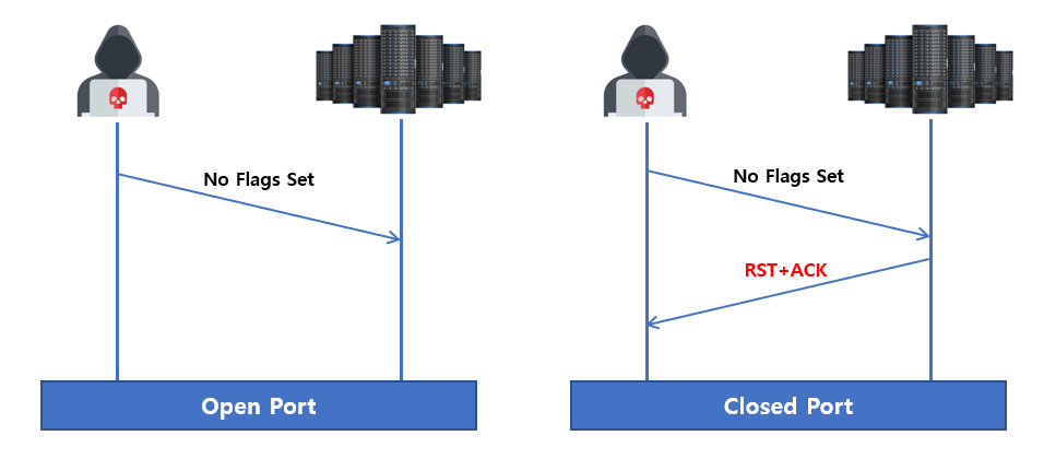 - 공격자는 희생자의 대상 포트로 제어비트를 설정하지 않은 패킷을 전송한다.