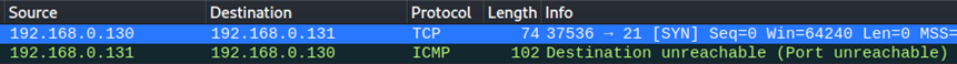 - 포트가 닫힌 상태 : RST+ACK 응답을 수신한다.