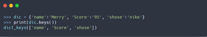 1) 딕셔너리 키 리스트 함수(keys)