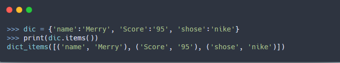 3) 딕셔너리 키와 값의 쌍 리스트 함수(items)