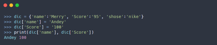 - 딕셔너리(Dictionary)은 리스트(List)나 튜플(Tuple)과 다르게 위치를 통한 인덱싱이 허용되지 않는다.