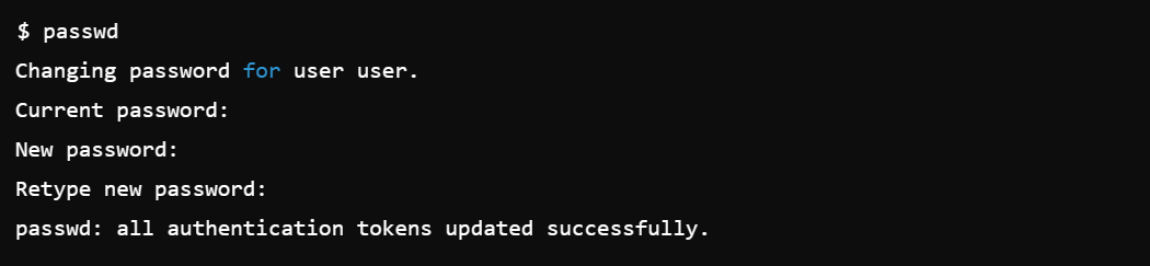 - 일반 사용자는 자신의 패스워드만 변경할 수 있지만 슈퍼 유저(root)는 자신을 포함하여 시스템에 등록된 모든 사용자들의 패스워드를 변경할 수 있다.
