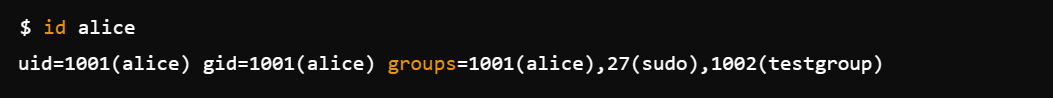 - UNIX 시스템에 접속 중인 사용자를 확인하려면 id 명령을 사용한다. 여기서 id는 Identification의 약자로 이 명령을 실행하면 사용자의 UID와 GID를 출력해준다.